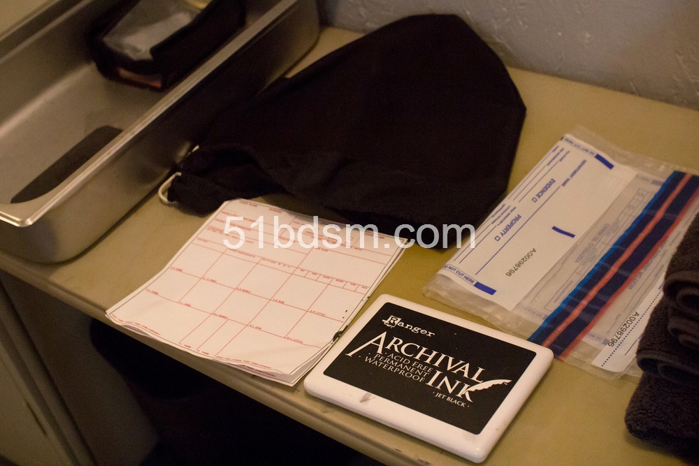 对没有我这种特殊癖好的人来说,填表、采指纹、量身高、拍犯人照这些完全就是可跳过的“小支线”,一点都不重要。但对我这种“看到官方表格就兴奋、一刻都不能乱了程序”的变态来说,这些细节才是整场戏最爽的部分!采集指纹的时候我一直在傻笑,别人可能以为我在笑这事太蠢、一点都不色情,可其实每一秒都让我兴奋得发抖,我只是单纯高兴得要命,因为终于可以彻底放飞自我,做一个超级变态的犯人,玩整整一个周末。