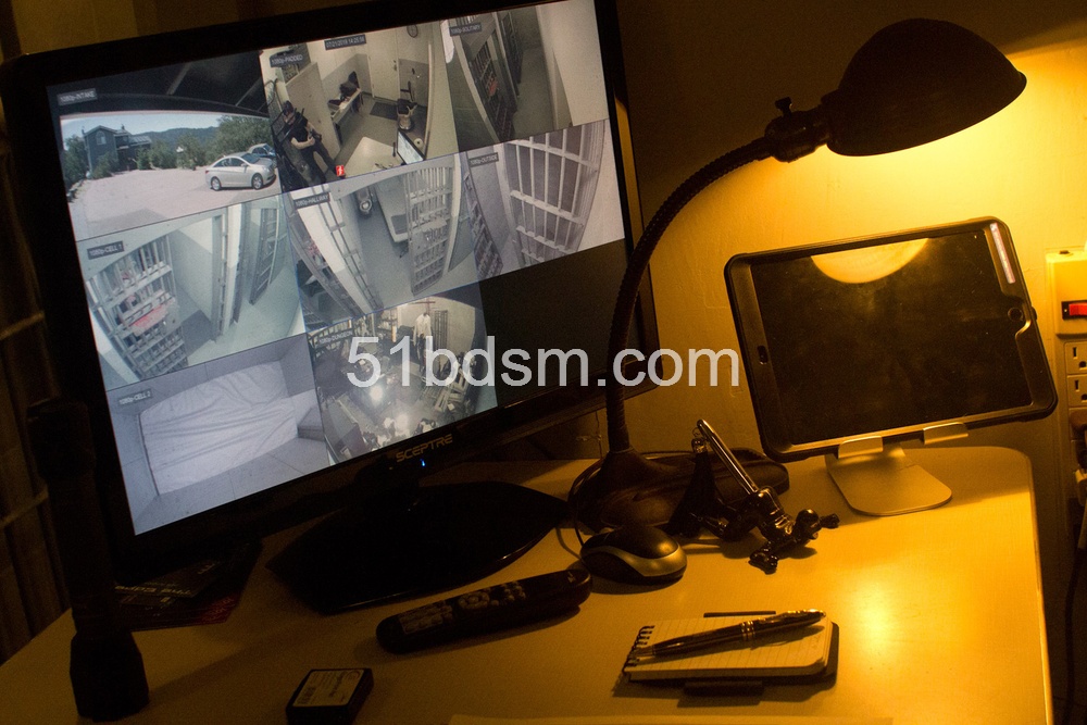 旁边就是主监控屏,全部全场监控画面的实时显示。每间牢房、软包房、隔离小黑屋都装了高清摄像头,狱警坐在办公桌前就能把犯人一举一动看得清清楚楚,就算你不在现场,也随时知道里面的人在哭泣、在颤抖,还是在崩溃边缘。