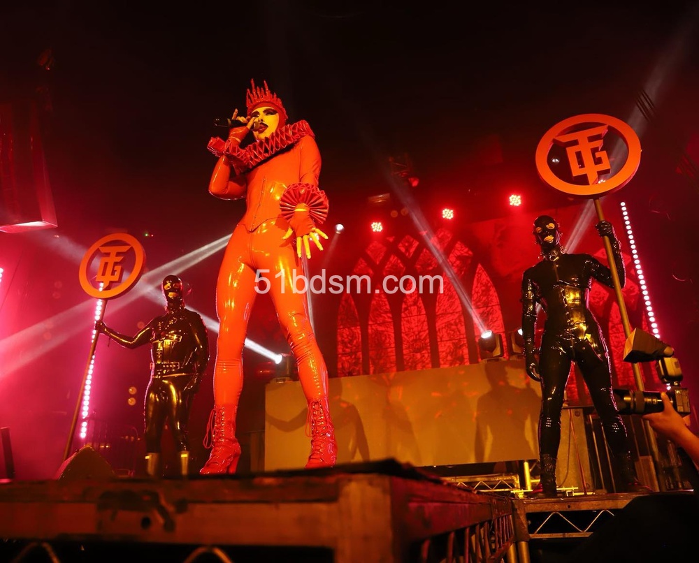 在洛杉矶的活动中,现场通常包括国际 DJ、极具视觉冲击的表演者、精致的乳胶与恋物时装秀、舞者和空中艺人等多样节目,现场布置和气氛极具戏剧性与沉浸感。活动设有多个主题房间,有时还会包括专为成人互动设计的游戏空间与“playrooms”。观众被鼓励穿着大胆、富有创意的 fetish 装扮——从全身乳胶、皮革到戏剧性妆容与装饰——以契合活动独特而严格的着装规范。