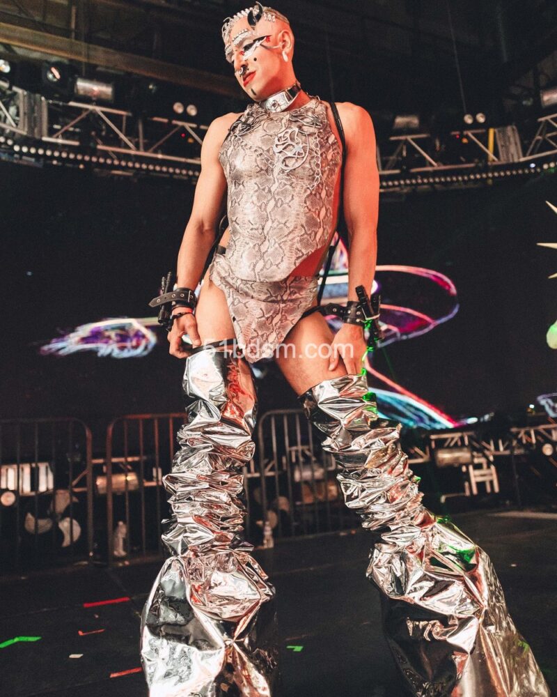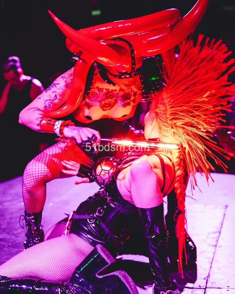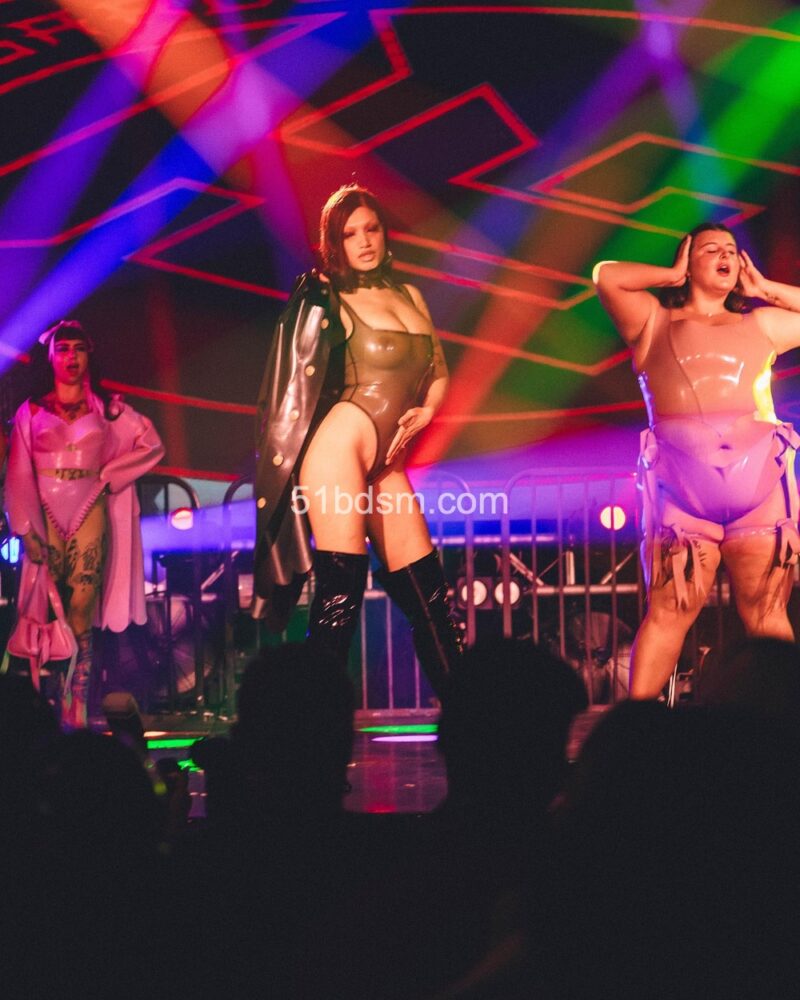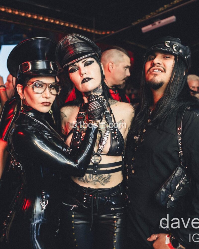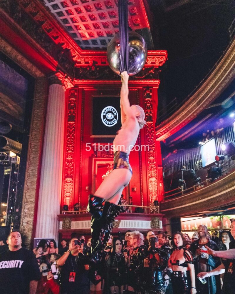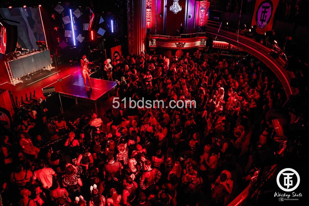 在洛杉矶的活动中,现场通常包括国际 DJ、极具视觉冲击的表演者、精致的乳胶与恋物时装秀、舞者和空中艺人等多样节目,现场布置和气氛极具戏剧性与沉浸感。活动设有多个主题房间,有时还会包括专为成人互动设计的游戏空间与“playrooms”。观众被鼓励穿着大胆、富有创意的 fetish 装扮——从全身乳胶、皮革到戏剧性妆容与装饰——以契合活动独特而严格的着装规范。
