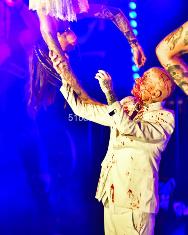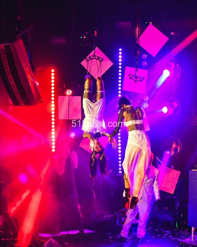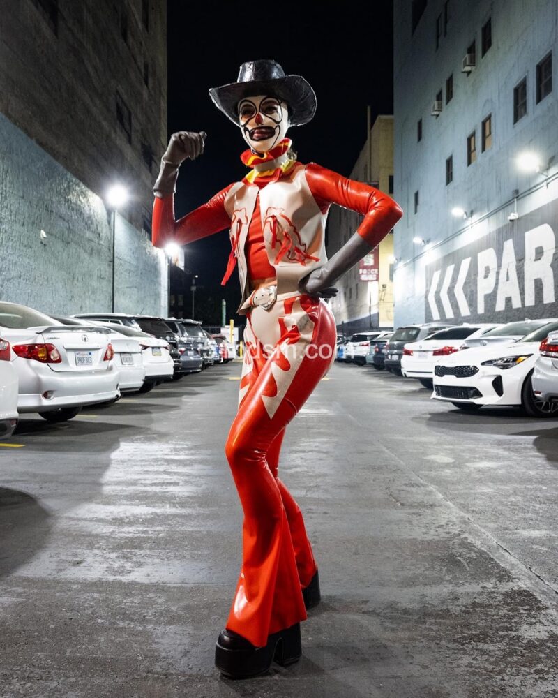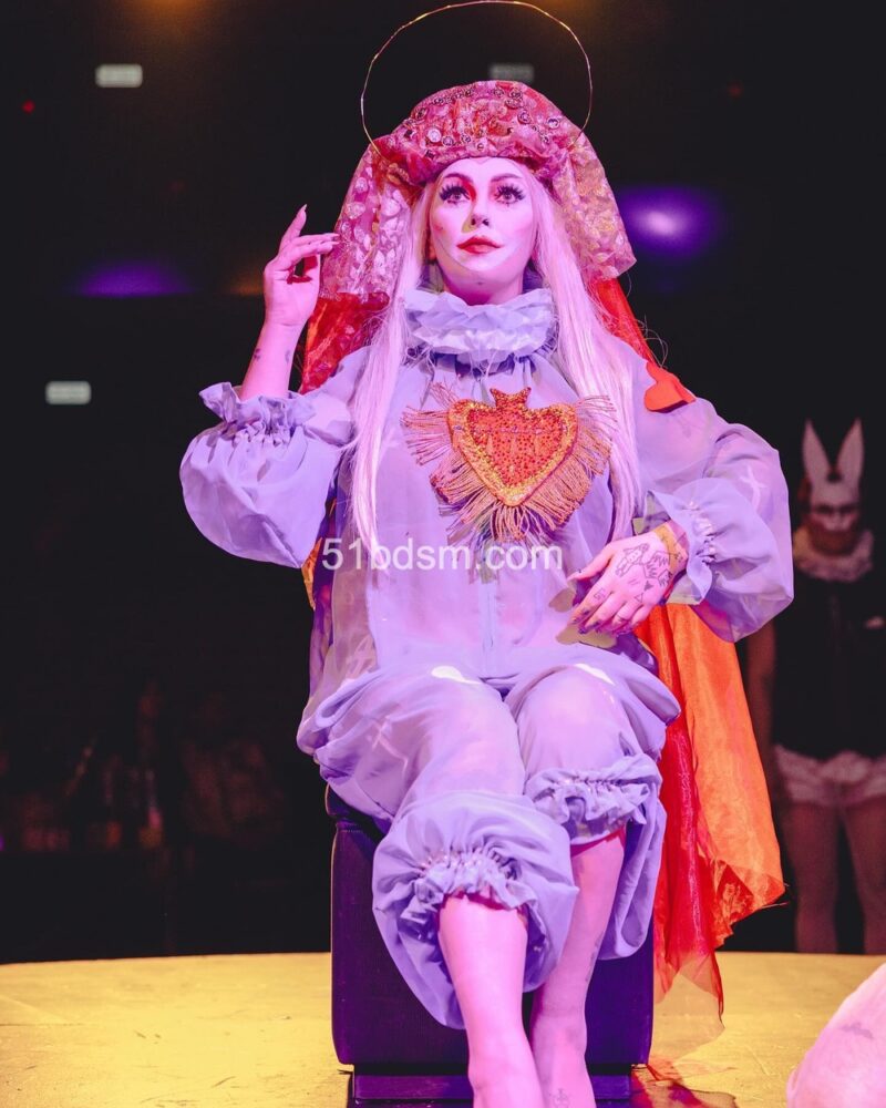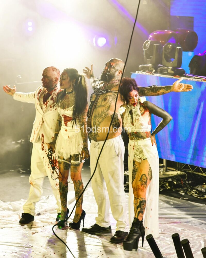 在洛杉矶的活动中,现场通常包括国际 DJ、极具视觉冲击的表演者、精致的乳胶与恋物时装秀、舞者和空中艺人等多样节目,现场布置和气氛极具戏剧性与沉浸感。活动设有多个主题房间,有时还会包括专为成人互动设计的游戏空间与“playrooms”。观众被鼓励穿着大胆、富有创意的 fetish 装扮——从全身乳胶、皮革到戏剧性妆容与装饰——以契合活动独特而严格的着装规范。