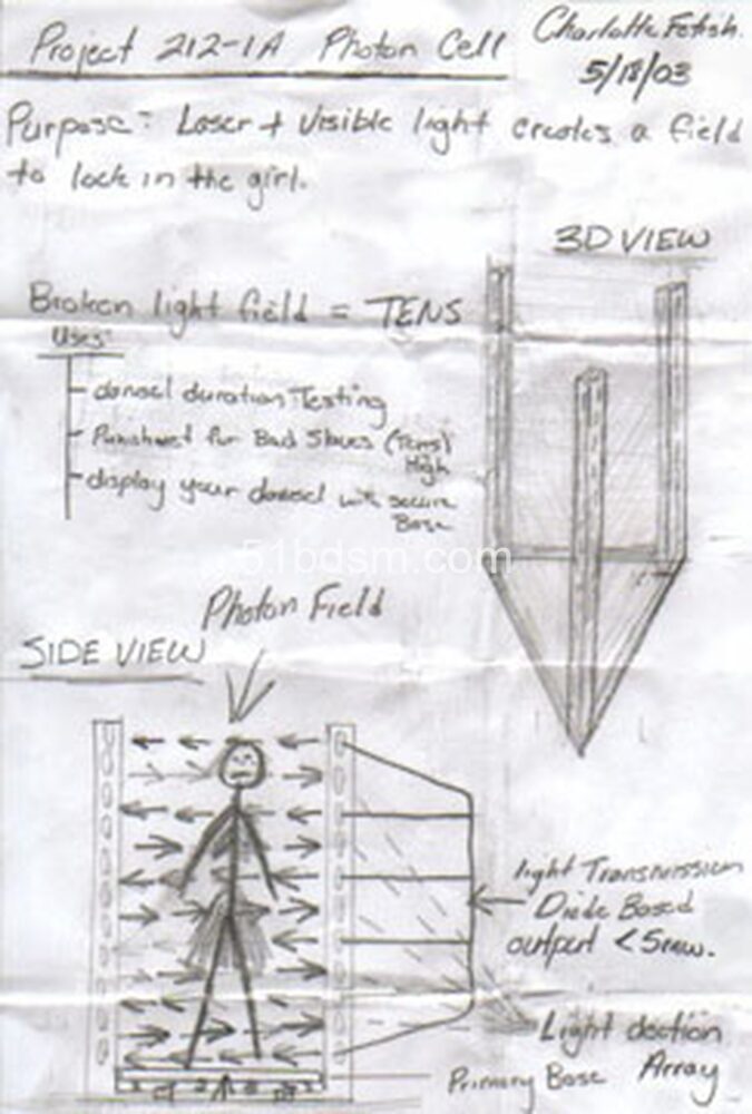 原理其实很直接,只要光场被破坏,系统就会立刻向 TENS 单元发出信号,触发一次电击。这个设计对于喜欢困境束缚的夏洛特来说,是很好的服从训练。想要不被电,就必须保持身体在激光形成的狭小牢笼中。
